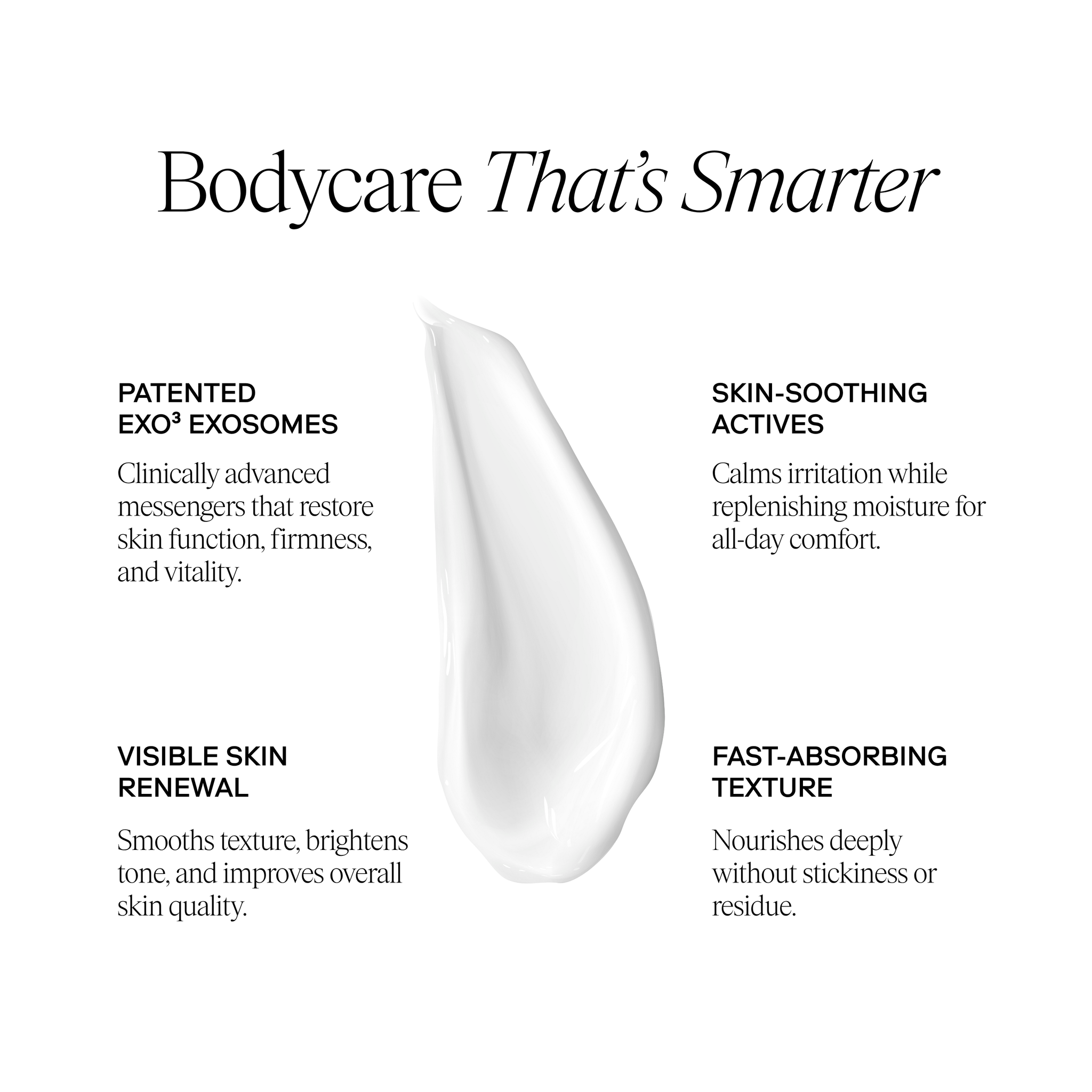 "We understand that skincare is uniquely personal. That’s why, before selecting ingredients and formulating our products, we took the time to understand people’s skin care needs. The one common denominator that can benefit all skin types regardless of differences are our eXo³ Exosomes®. You won’t find a lotion like EXO BODY™ it really is a game changer."